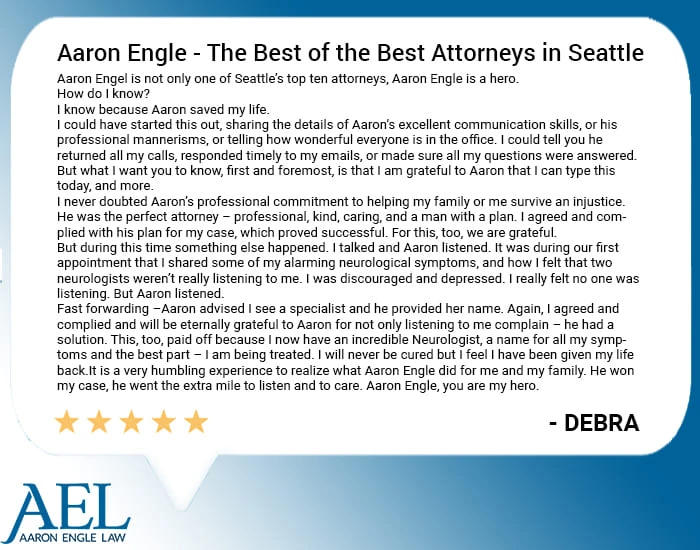 Thousands of families throughout the Puget Sound area have turned to AEL during some of the toughest times in their lives. We’re not here just to get them a quick settlement and move on to the next case. Instead, we take pride in the way we partner with our clients to get them the best possible medical care and move forward with their lives.